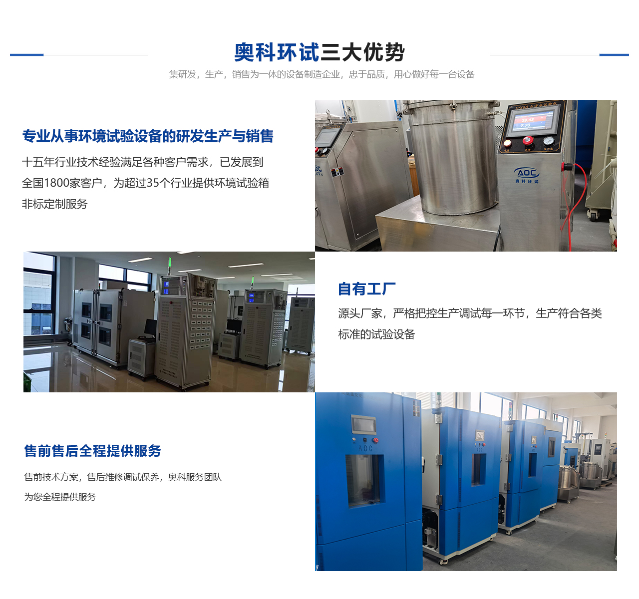 安徽奧科試驗(yàn)設(shè)備有限公司隸屬于杭州奧科環(huán)境試驗(yàn)設(shè)備有限公司直屬分公司,是一家從事各種試驗(yàn)設(shè)備研發(fā)、生產(chǎn)與銷(xiāo)售一體的技術(shù)單位??偣緭碛袕?qiáng)大的技術(shù)團(tuán)隊(duì)及科學(xué)嚴(yán)謹(jǐn)?shù)纳a(chǎn)流程,鑄就了產(chǎn)品質(zhì)量。公司本著“以質(zhì)量求生存,以信譽(yù)求發(fā)展”的原則,為科研、軍事、航空、電子、汽車(chē)、石油、化工、醫(yī)療、通訊等各大院校和企事業(yè)單位提供符合GB、GJB、IEO、ISO、ASTM、MIL、DIN等標(biāo)準(zhǔn)的各類(lèi)環(huán)境試驗(yàn)設(shè)備,并可根據(jù)用戶(hù)的需求設(shè)計(jì)制造各類(lèi)非標(biāo)性設(shè)備。奧科奉行“進(jìn)取求實(shí)嚴(yán)謹(jǐn)團(tuán)結(jié)”的方針,不斷開(kāi)拓創(chuàng)新,以技術(shù)為核心、視質(zhì)量為生命、奉用戶(hù)為上帝,竭誠(chéng)為您提供高性?xún)r(jià)比的自控產(chǎn)品及無(wú)微不至的售后服務(wù)。