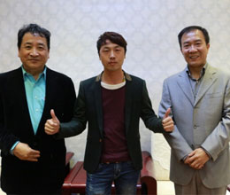 經(jīng)紀人張勇與相聲演員姜昆,戴志誠合影